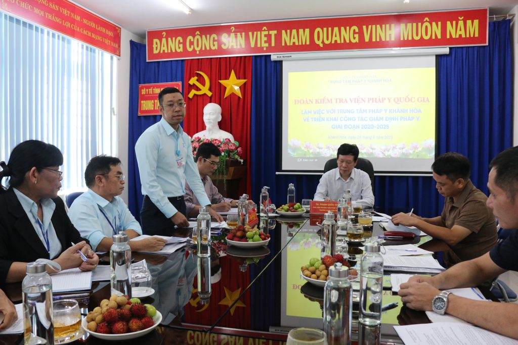 Đoàn công tác làm việc với các Sở, ngành của Tỉnh Khánh Hòa gồm có các đại diện lãnh đạo của Sở Y tế, Sở Tư pháp, Tòa án nhân dân, Viện kiểm sát nhân dân, Công an thành phố, Trung tâm Pháp y và Phòng Kỹ thuật hình sự. Buổi làm việc trao đổi, thảo luận, nhận xét, góp ý, đánh giá về công tác giám định pháp y trên địa bàn tỉnh để nắm bắt thực tế nhằm tháo gỡ những khó khăn, vướng mắc, phục vụ tốt công tác giám định pháp y trên địa bàn Tỉnh Khánh Hòa.
